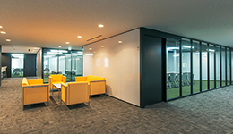 ガラスの間仕切りを使うことによって、1ランク上の明るく洗練されたデザインのワークスペースが実現可能です。