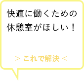 休み時間やランチタイムにほっとできる休憩室を設置すると、心身ともにリフレッシュして職場に戻って次の仕事ができます。