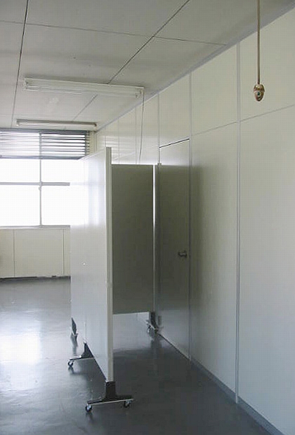 不燃材を使ったパーティションで、危険注意のモノや空間を囲います