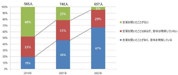 前回の調査結果では、D&Iという言葉自体を21%の従業員が聞いたことがないという結果でしたが、今回は5%と減少しました。また、D&Iという言葉を聞いたことがあり、意味も理解している従業員が前回の46%から67%と増加しており、着実にD&Iの認識と理解が進んでいることがわかりました。