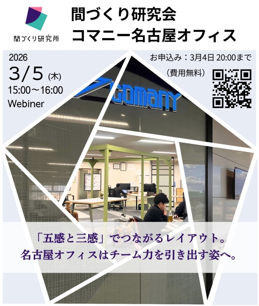 間仕切りで新たな価値を創造する間づくりカンパニーのコマニー株式会社(本社:石川県小松市、代表取締役社長執行役員:塚本健太)は、同社の間づくり研究所の主催で2026年3月5日に当社の名古屋営業所のオフィスリニューアルを通して実現した働き方をテーマとしたオンラインイベントを開催することをお知らせします。