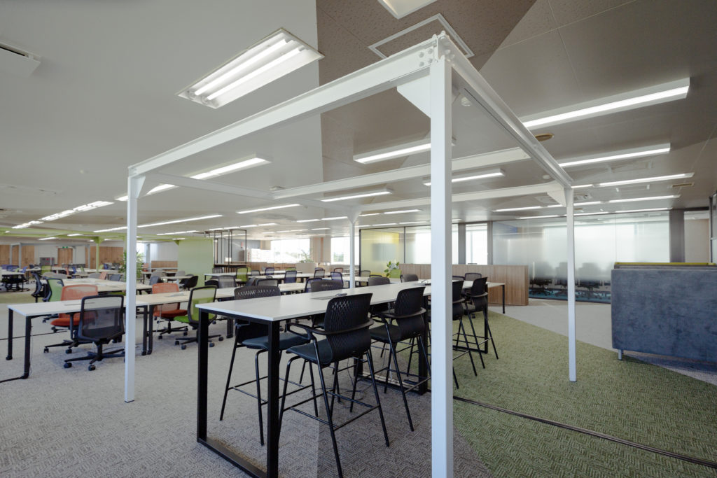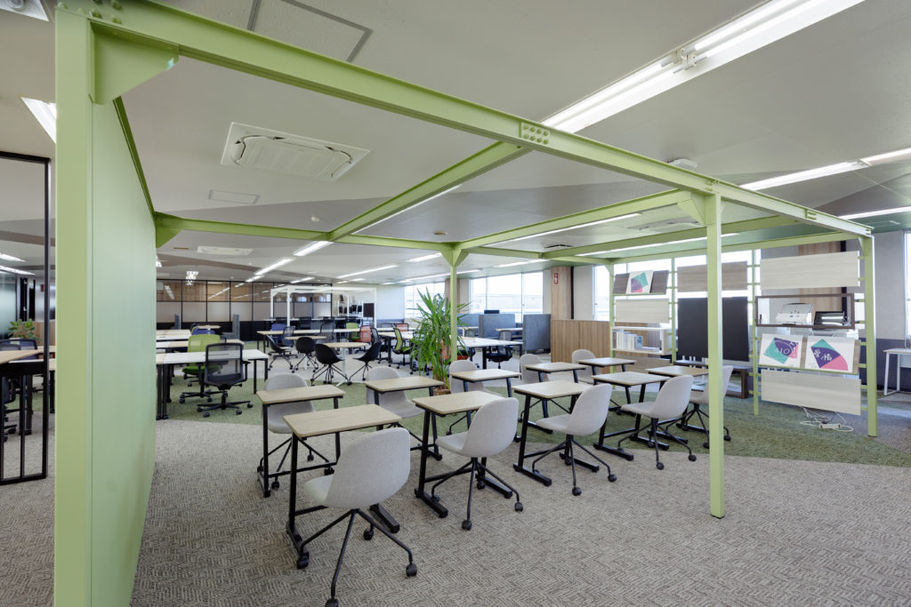 『間仕切りメーカーから間づくりをする企業へ』と変革し、改めてセンターオフィスである本社としての機能やあり方を検討するとともに、Well-beingと生産性向上を目指し、働く環境を自分たちで間づくりしていく実践の場として本社事務所棟のリニューアルを行いました。