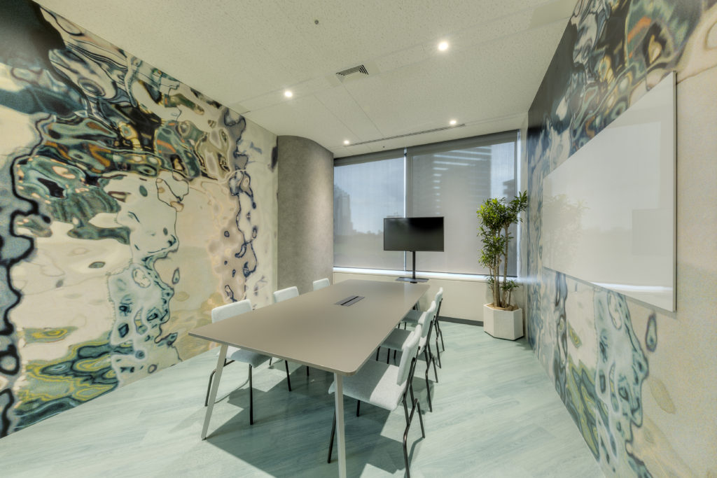 また、周囲に配置された会議室にはジーニー様の自由な働き方を体現できるよう全ての会議室に世界中の