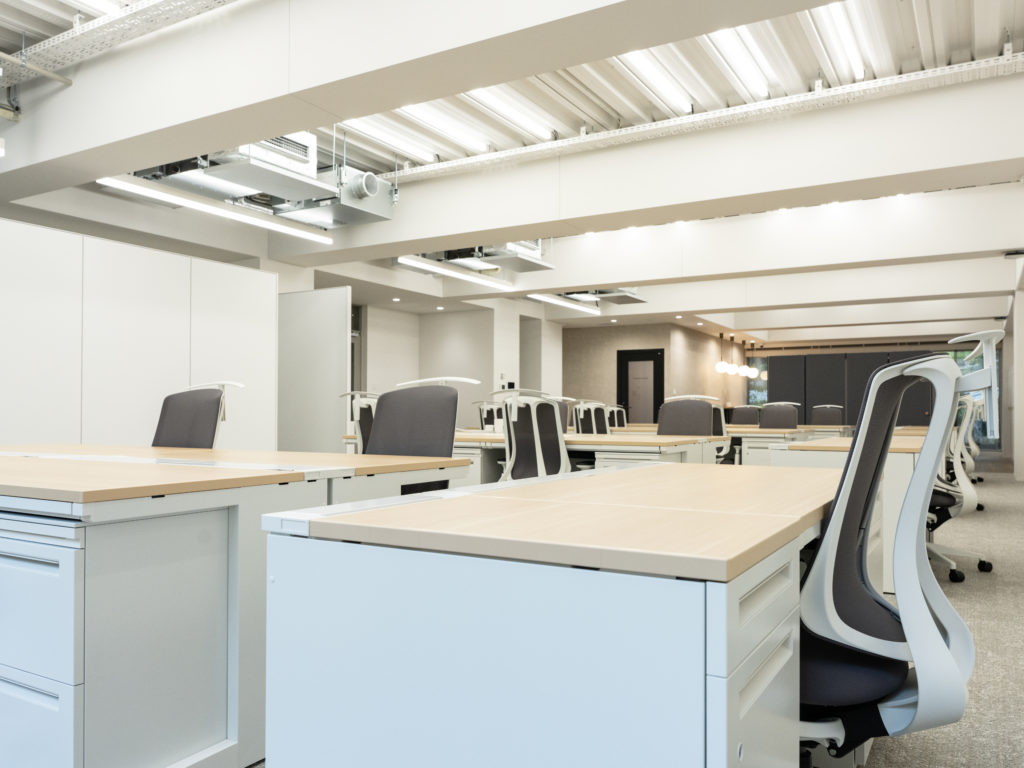 ビルオーナーとしてご入居されるということで、今後のリーシングを見据えて、オーナーと入居者様を繋ぐような環境づくりを目指しました。未来の入居者様へオフィスの魅力を感じてもらえるよう、共用部の意匠性を取り込み、ビル自体が持つ魅力を活かした一体感のある空間をご提案させていただきました。