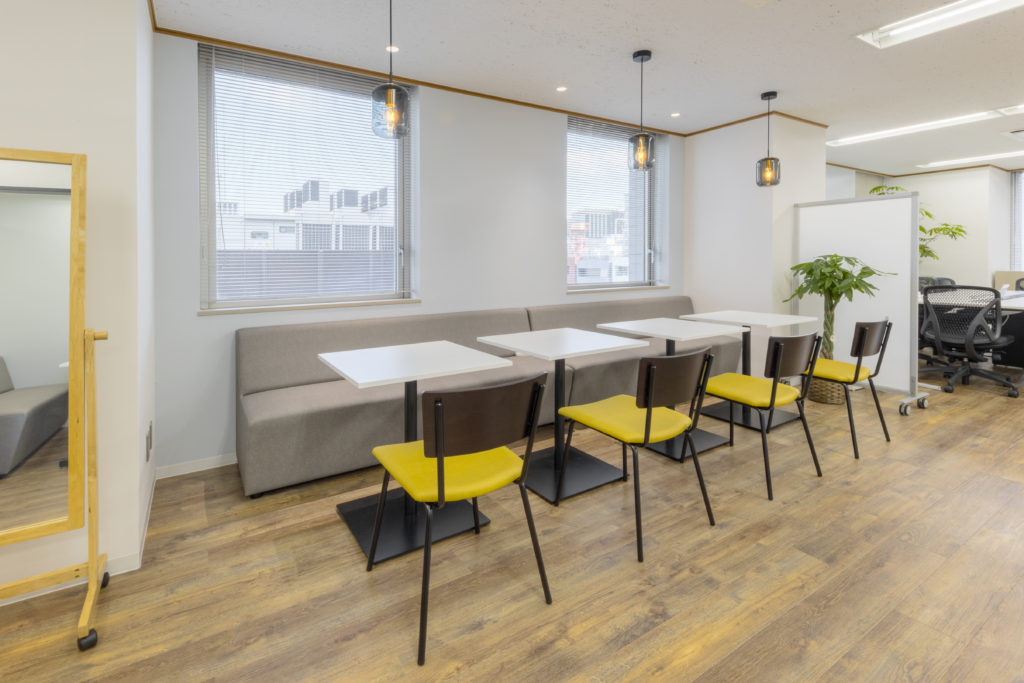 ミーティングエリアもなるべく閉塞感が出ないよう、部屋窓をつけました。