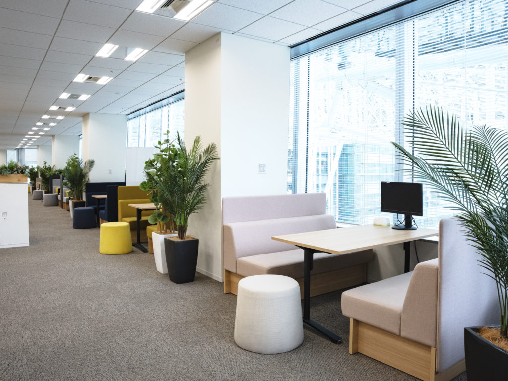 執務エリアは、従来の働き方を継承させ、動線を明確にしたゾーニングとし、また、植栽を多く置くことで、社員の方々がリラックスしながら働ける環境を整えました。