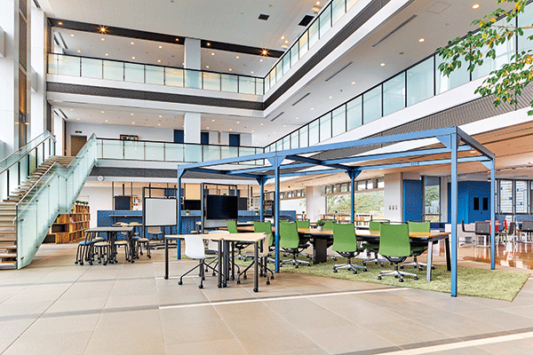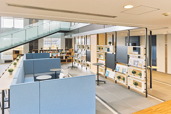関西大学様との活動では、私たちの専門知見を活用し、コンセプトやニーズを丁寧にヒアリングしました。「学生だけでなく、教職員も使えるコモンズにしたい」「入学したばかりの学生同士が自然と打ち解けられるよう、気軽に交流できる空間にしたい」といったご要望に対し、既存什器や植栽の活用も含めてご提案しました。プランボードやイメージパースを用いながら、理想のラーニングコモンズをお客様と共に『間づくり』しました。学生や教職員が笑顔で利用している姿を思い浮かべながら何度も打ち合わせを重ね、心を込めてひと手間をかけたことにより、完成後は学生や教職員の笑顔や笑い声で溢れる空間となりました。