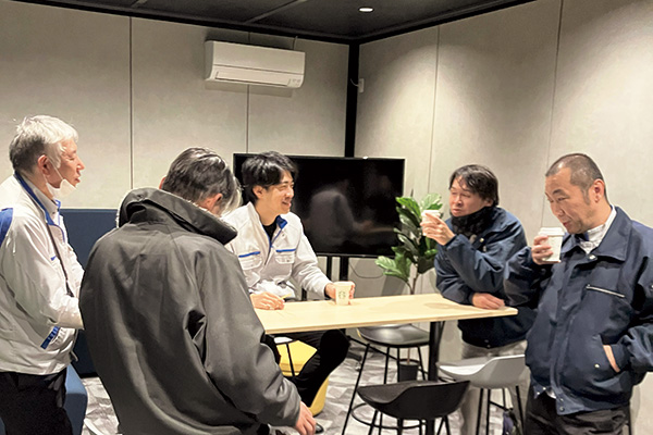 本社地区において「最も美味しいコーヒーが飲める場所」として、ちょっとした人気スポットとなっています。出張で訪れた社員や、別の建屋で働く従業員がふらりと立ち寄ることで、思いがけない出会いや会話が自然と生まれています。コーヒーをきっかけに、人と人との繋がりが広がっていく。間づくりされたあたたかい場所です。