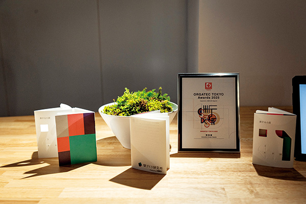 今回のブース展示は「ORGATEC TOKYO Awards」特別賞を 受賞しました。「旅する小説」は、仕事における直感や感性 の重要性を体験し、自分らしい働き方への気づきを促す空 間です。デザイン性が高く評価され、特別賞受賞にいたり ました。審査には展示されている160社のブースが対象と なり、コマニーを含む10ブースが受賞しました。