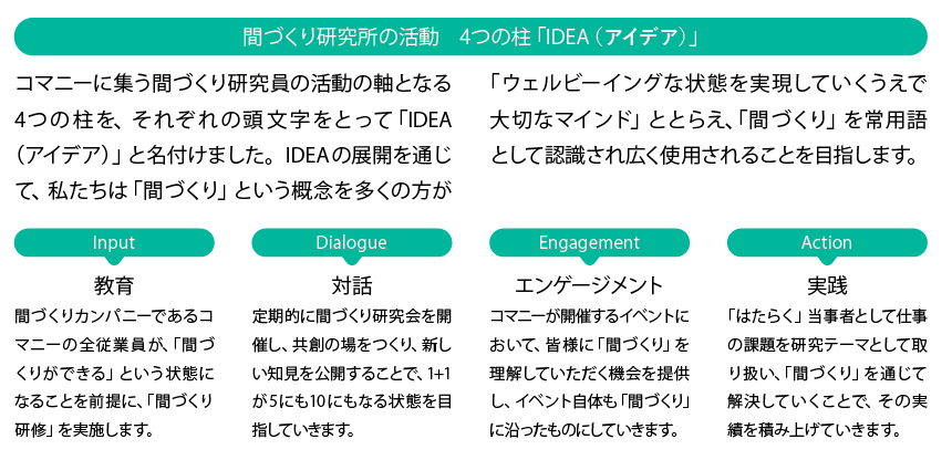 コマニーでは、「間づくり」の取り組みをさらに加速させる実践の場として、社内に「間づくり研究所」を開設しました。